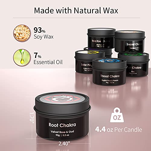 - [Natural & Eco Friendly] Produced with environmentally friendly ingredients, each candle comprises 100% natural soy wax, pure cotton wicks and are infused with essential oils selected for their aromatherapy benefits relative to balancing each chakra.